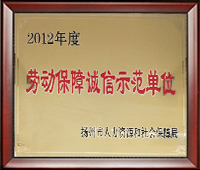 ◇ 榮獲2012年揚(yáng)州市勞動(dòng)保障誠信示范單位